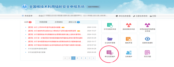 2、進(jìn)入首頁,點(diǎn)擊單位信息維護(hù)-年度報(bào)告。